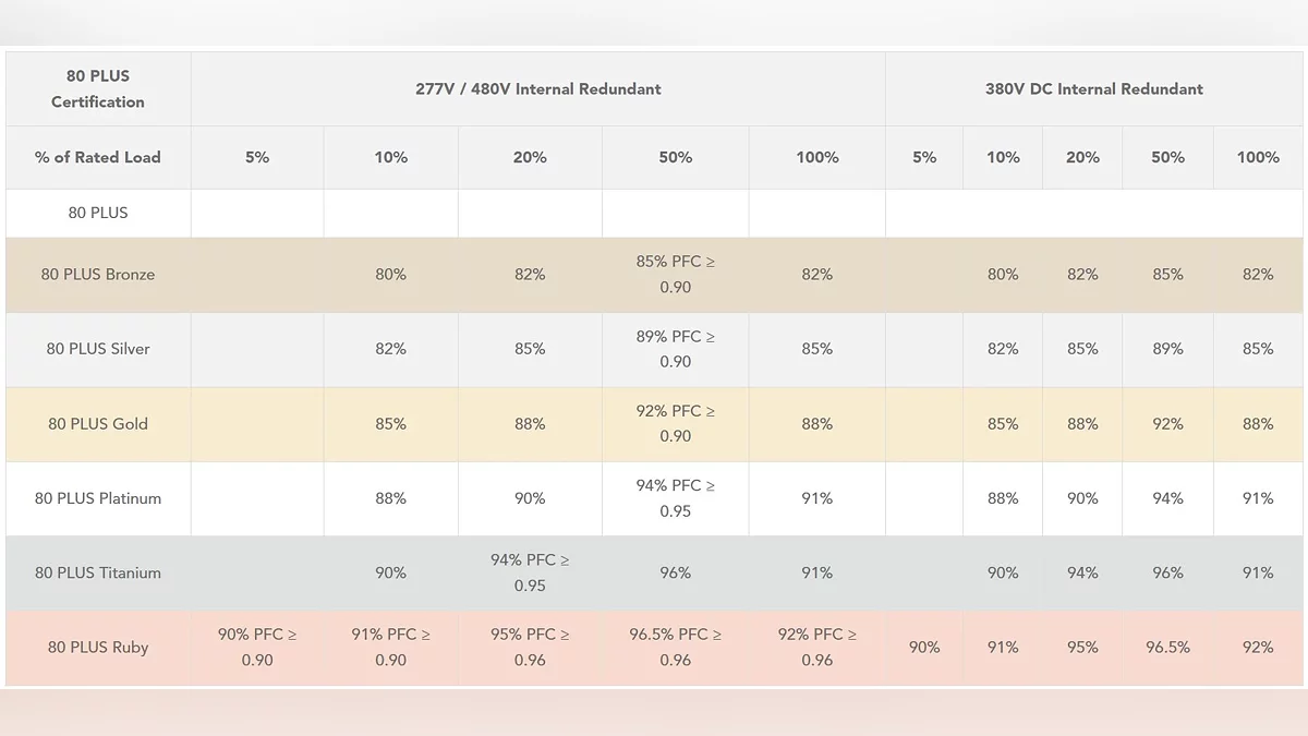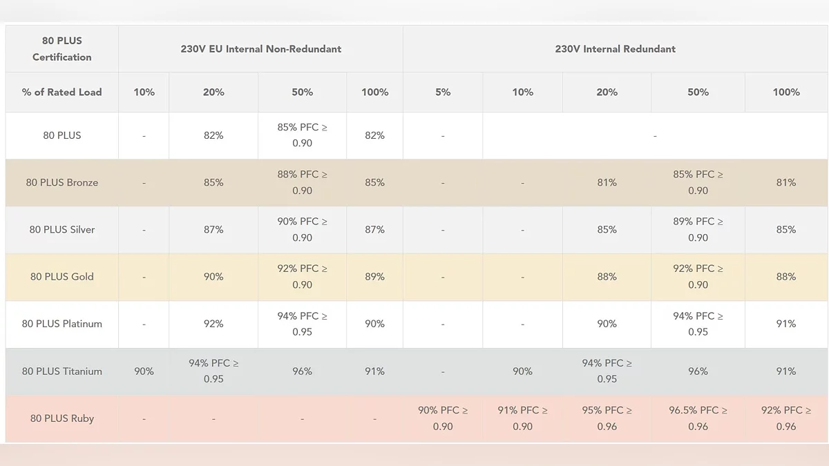 Консалтинговая компания CLEAResult, специализирующаяся на сертификации блоков питания, объявила о введении нового уровня энергоэффективности — 80 PLUS Ruby. Это первый новый стандарт за последние 14 лет в рамках программы 80 PLUS, и он сразу занял высшую позицию в существующей иерархии.
