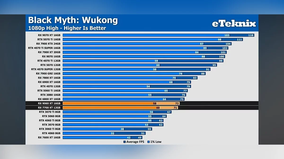 Первые тесты AMD Radeon RX 9060 XT: новый GPU не дотягивает до уровня RX 7700 XT -