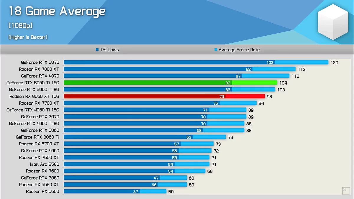 На YouTube-канале Hardware Unboxed появился детальный разбор производительности новой видеокарты AMD Radeon RX 9060 XT 16 ГБ. Обозреватели провели серию игровых тестов, чтобы оценить позиционирование новинки на рынке.