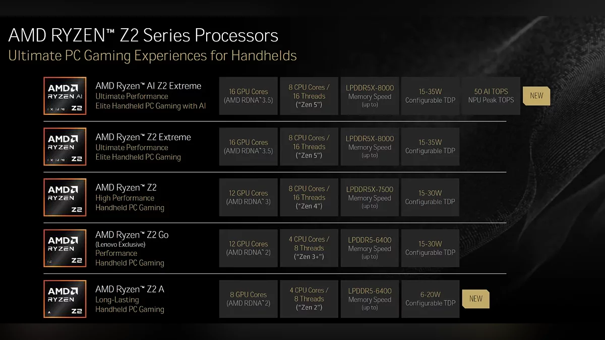 Линейка мобильных процессоров AMD Z2 пополнилась чипами Extreme с ИИ и энергоэффективным A