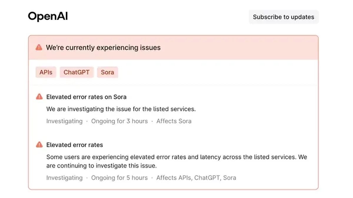 Глобальный сбой OpenAI: ChatGPT, Sora и API недоступны для пользователей по всему миру