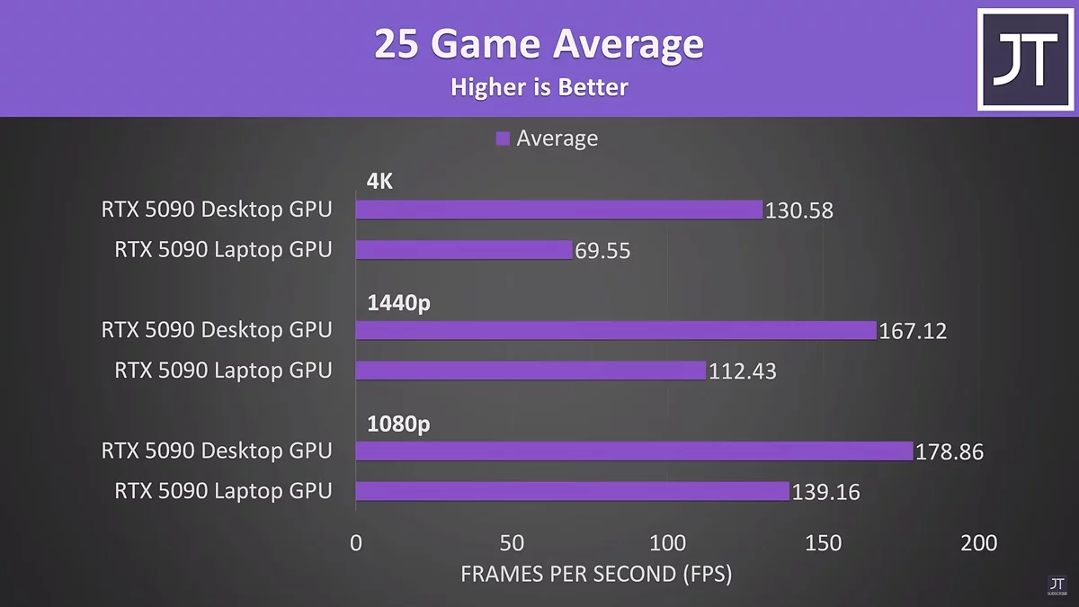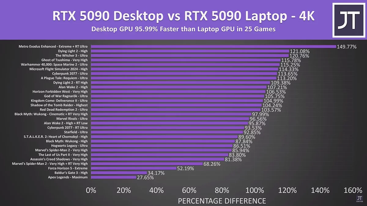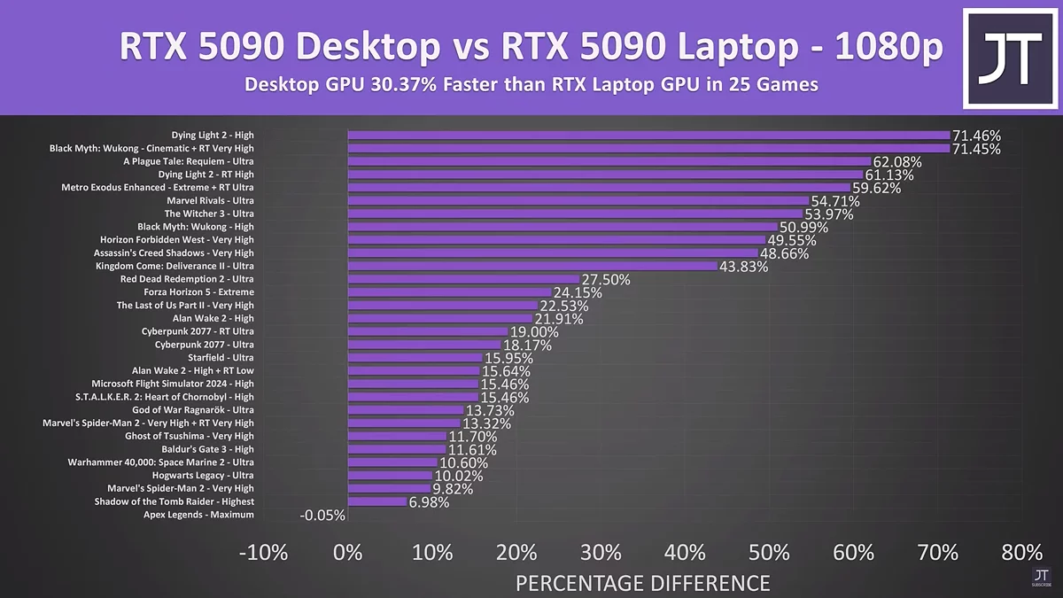 Мобильная RTX 5090M vs десктопная: Разрыв в играх достигает 149%