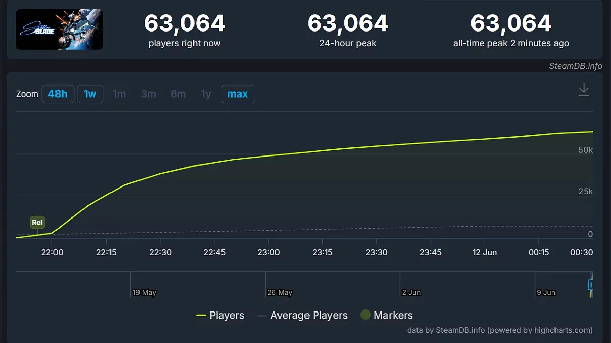 Онлайн Stellar Blade в первые часы превысил 60 тыс игроков.