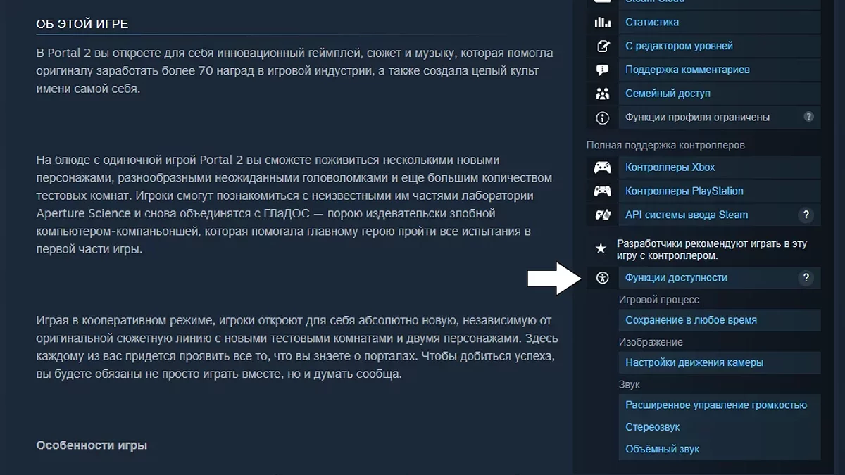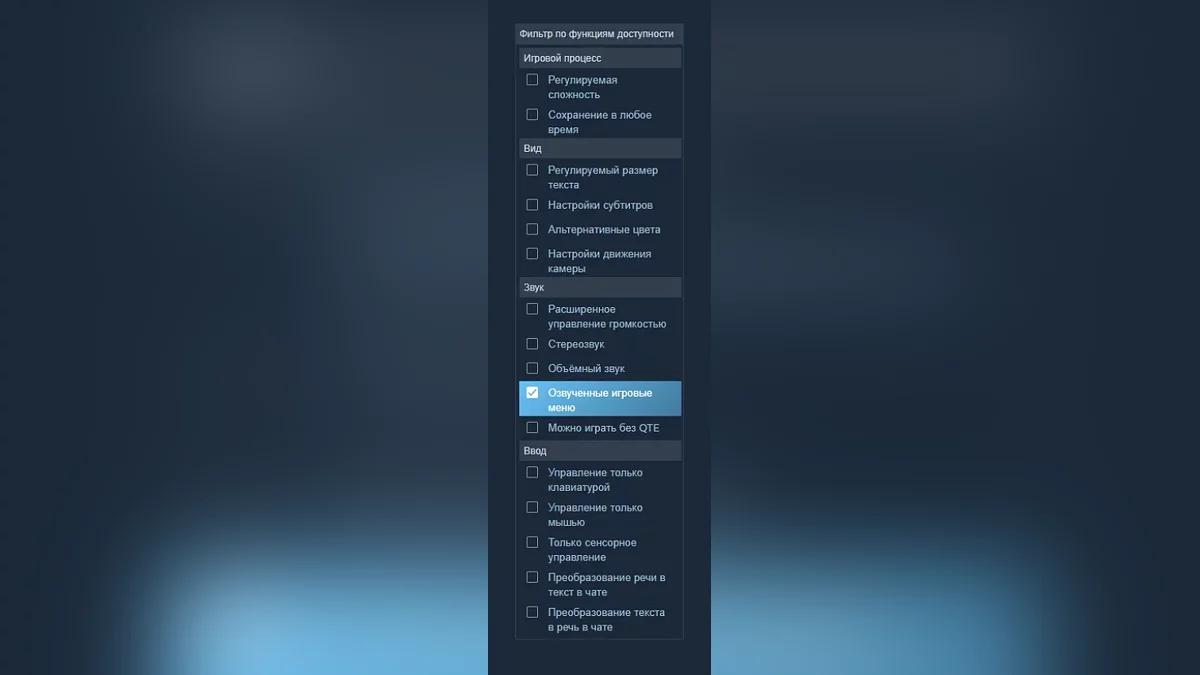 Пользователи теперь могут легко найти игры с поддержкой конкретных опций, таких как субтитры, регулируемая сложность, настройки субтитров, объемный звук, управление и т.п.