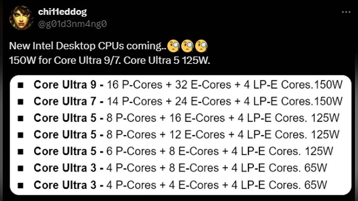 - Вариант с 14P + 24E + 4LP-E (42 ядра, 150 Вт) — его позиционирование (Ultra 9 или Ultra 7) пока уточняется.