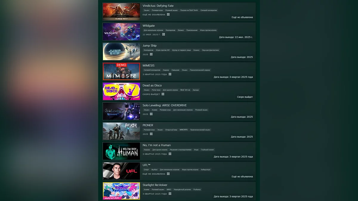 Valve опубликовала топ самых самых популярных демоверсий фестиваля «Играм быть» (Next Fest) в Steam, который стартовал 9 июня и продлился до 16 числа. В список попали 50 демок.