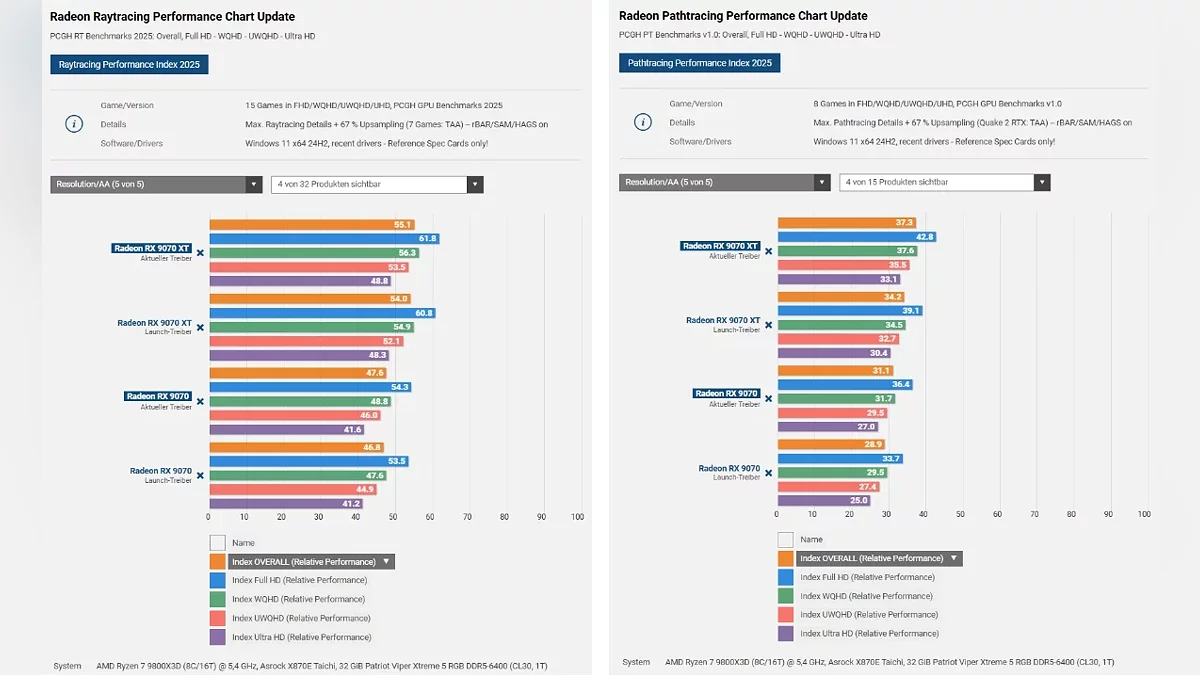 Пользователи видеокарт AMD Radeon RX 9070 и RX 9070 XT получили неожиданный бонус к производительности спустя несколько месяцев после старта продаж. Как подтверждают свежие тесты, последние обновления драйверов значительно повысили частоту кадров в ряде популярных проектов.