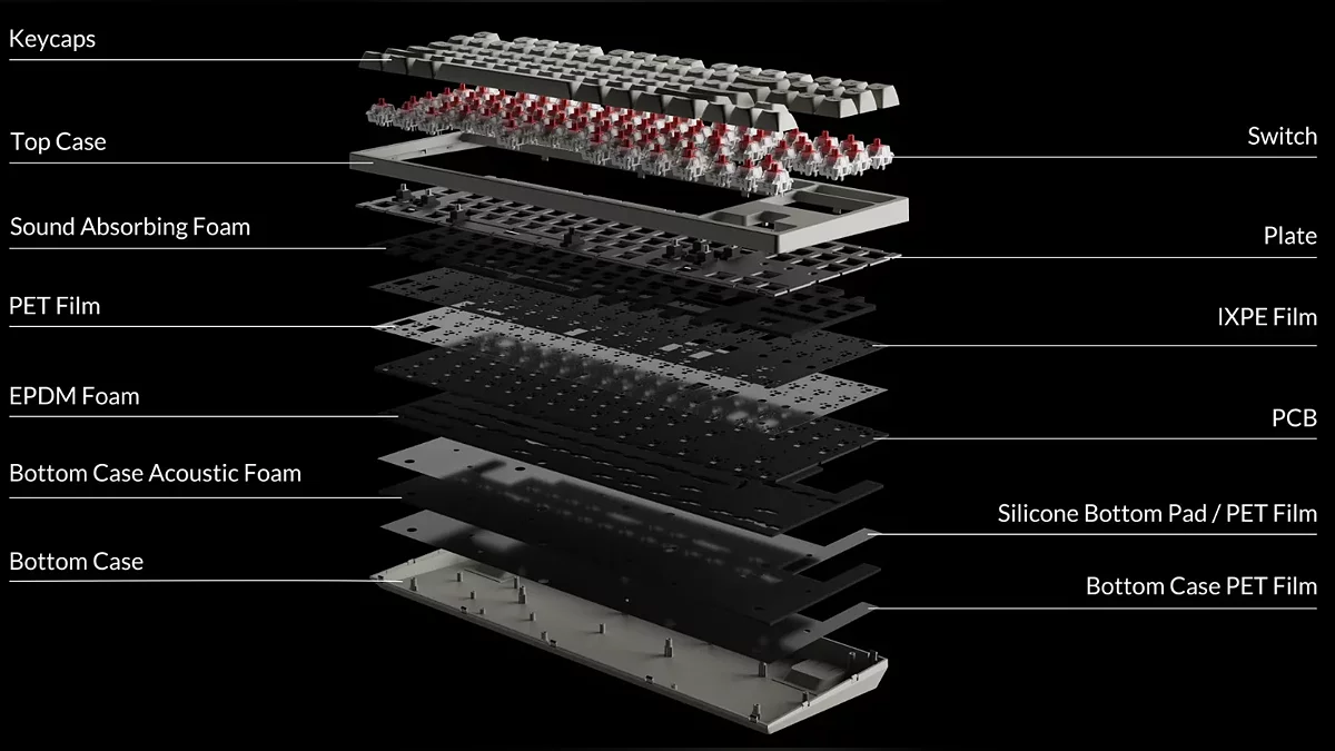 Несмотря на общую цену и ключевые функции, клавиатуры предлагают разный опыт использования. Модель C3 Pro 8K использует конструкцию гаскет-маунт с поликарбонатной пластиной и расширенной шумоизоляцией (два слоя пены + силикон + PET/IXPE пленки), что обеспечивает более мягкий, тихий и податливый отклик при нажатиях. Она оснащена кейкапами Cherry-профиля из PBT с возможностью сквозной подсветки (north-facing RGB) и имеет углы наклона около 4°, 6° и 8,7°.