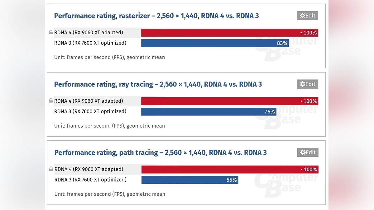 Результаты AMD (RDNA 4 vs. RDNA 3):