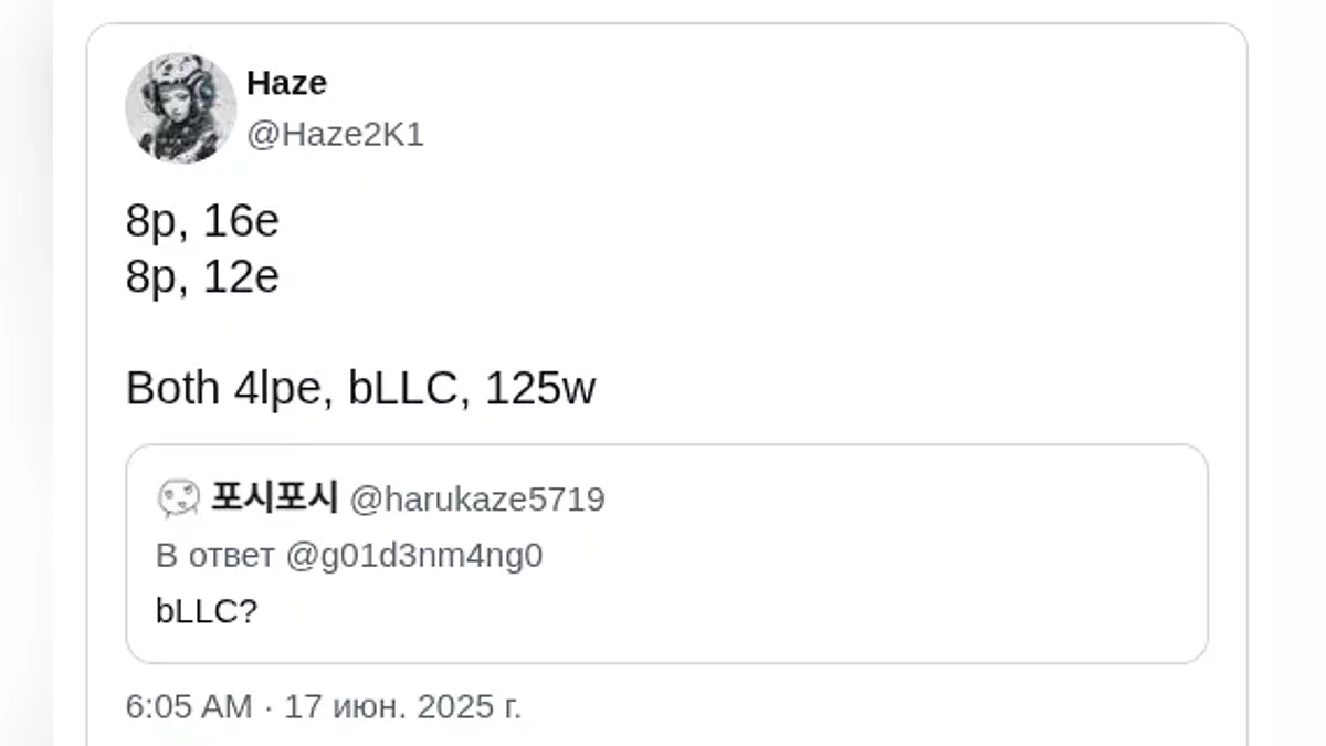 Инсайдерская информация указывает на как минимум две конфигурации в линейке: с 8 производительными ядрами в сочетании с 12 или 16 энергоэффективными. Именно эти модели могут получить кэш увеличенного объема, обозначаемый как bLLC (big Last Level Cache).