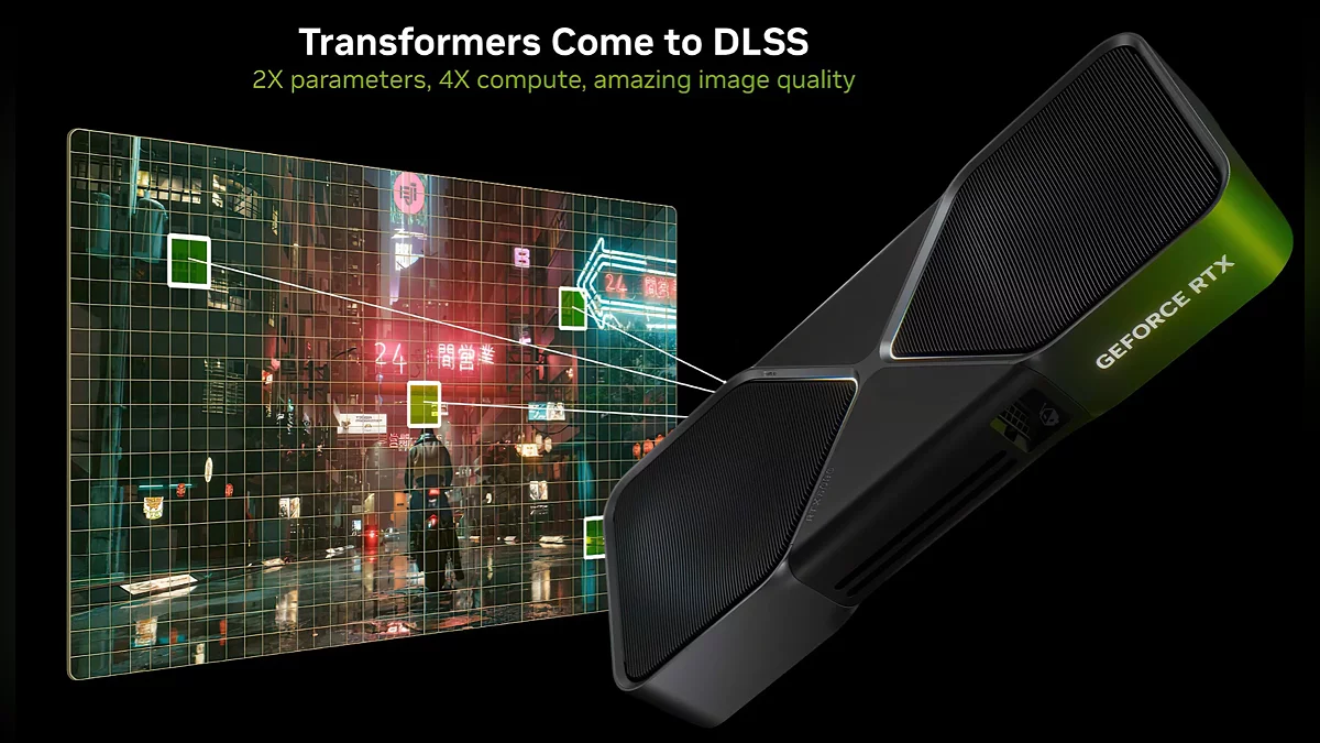 На практике такой «всеохватный» подход требует серьезных ресурсов — новая модель использует вдвое больше вычислительных параметров, чем CNN. По заверениям NVIDIA, благодаря новой модели станут заметно меньше визуальные помехи, особенно шлейфы за быстро движущимися объектами, а границы предметов и персонажей будут выглядеть более гладкими и естественными. Также повысится общее восприятие картинки благодаря лучшему пониманию контекста сцены нейросетью.