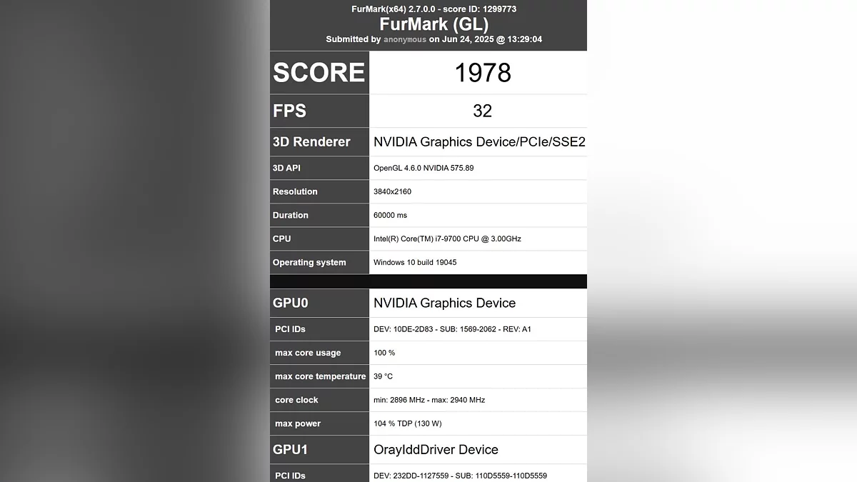 В базе бенчмарка FurMark заметили необычную запись. Речь идет о результатах, приписываемых настольной версии ожидаемой видеокарты NVIDIA GeForce RTX 5050.