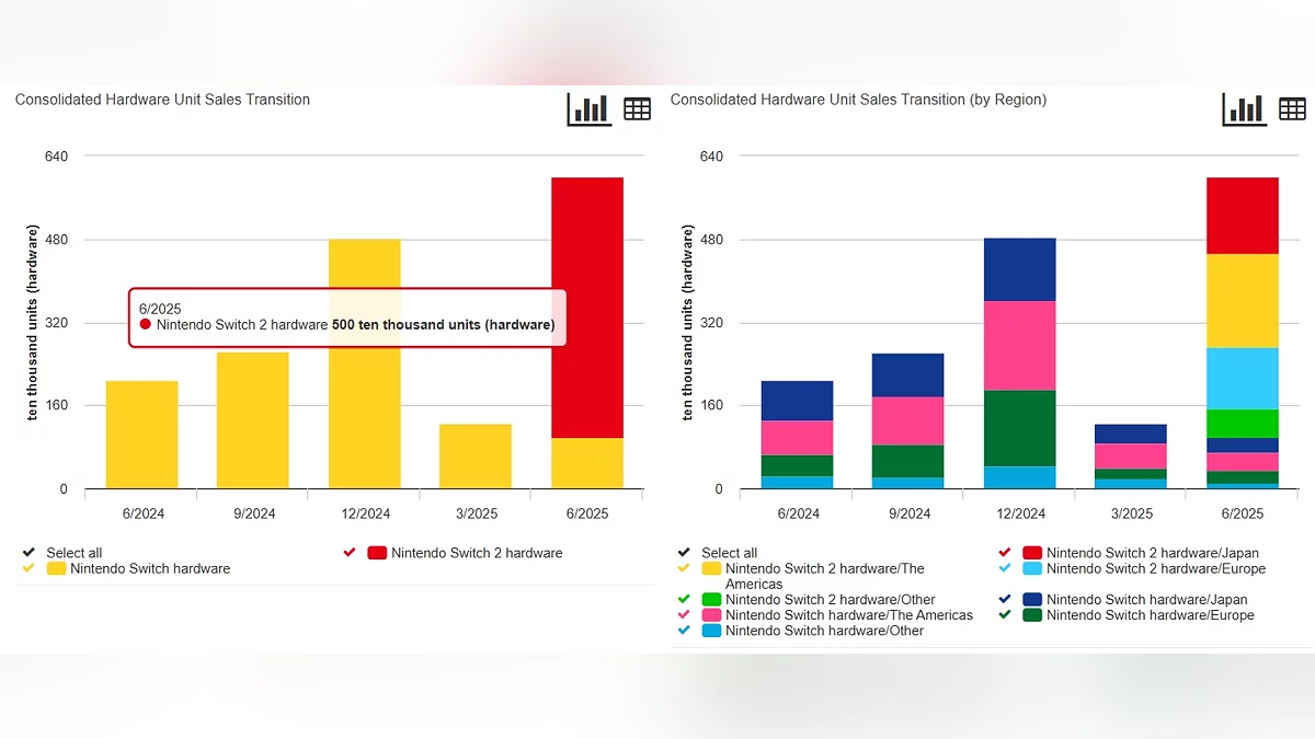 Данные исчезли. Вскоре после того, как график с месячными продажами Switch 2 был замечен пользователями и стал распространяться в сети, Nintendo удалила его со своего сайта. Компания пока не прокомментировала причины удаления статистики по Switch 2. Если цифра в 5,4 млн (упоминаемая в некоторых источниках) верна, то Switch 2 демонстрирует беспрецедентный для Nintendo старт.