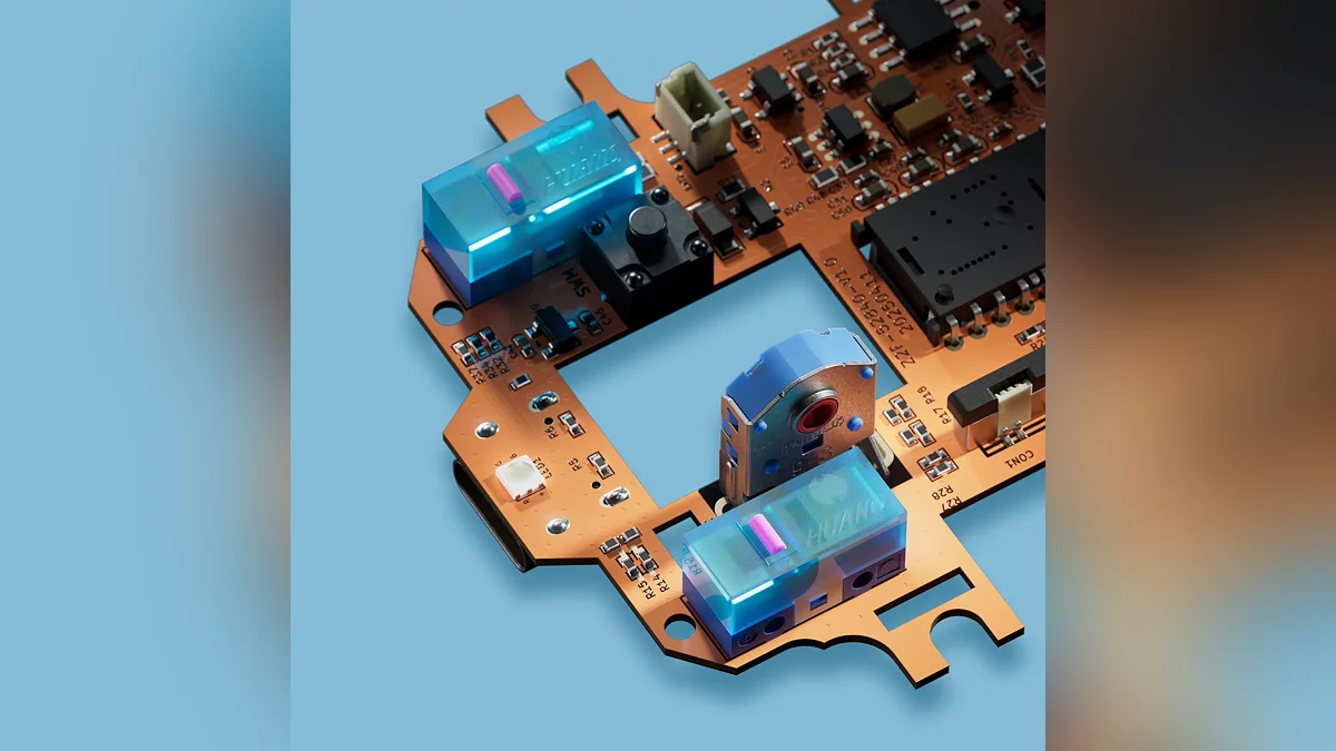 - Переключатели Huano Blue Pink Dot имеют ресурс в 80 млн нажатий, а пылезащищённый энкодер Pulsar Blue используется для бесшумной работы колеса.