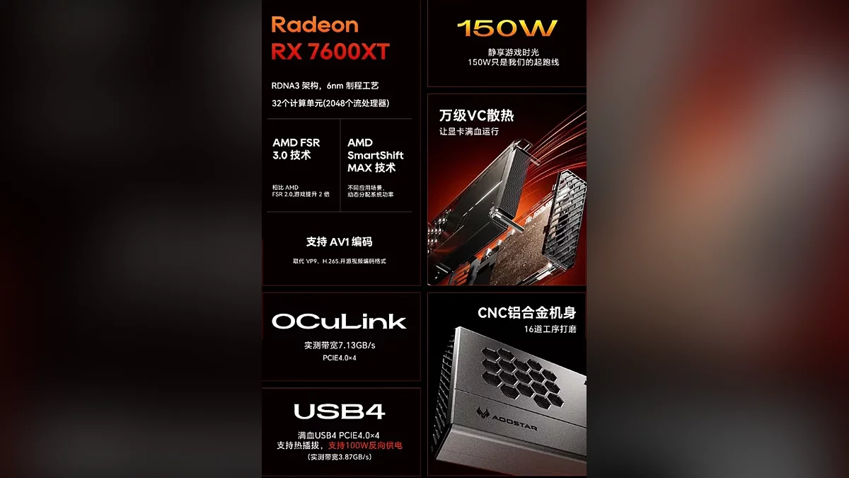 В Китае дебютировала внешняя видеокарта Aoostar XG76XT на настольной RX 7600 XT
