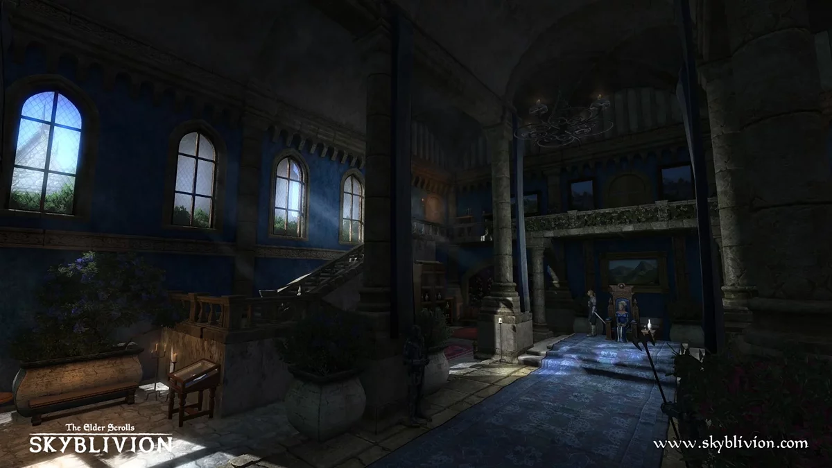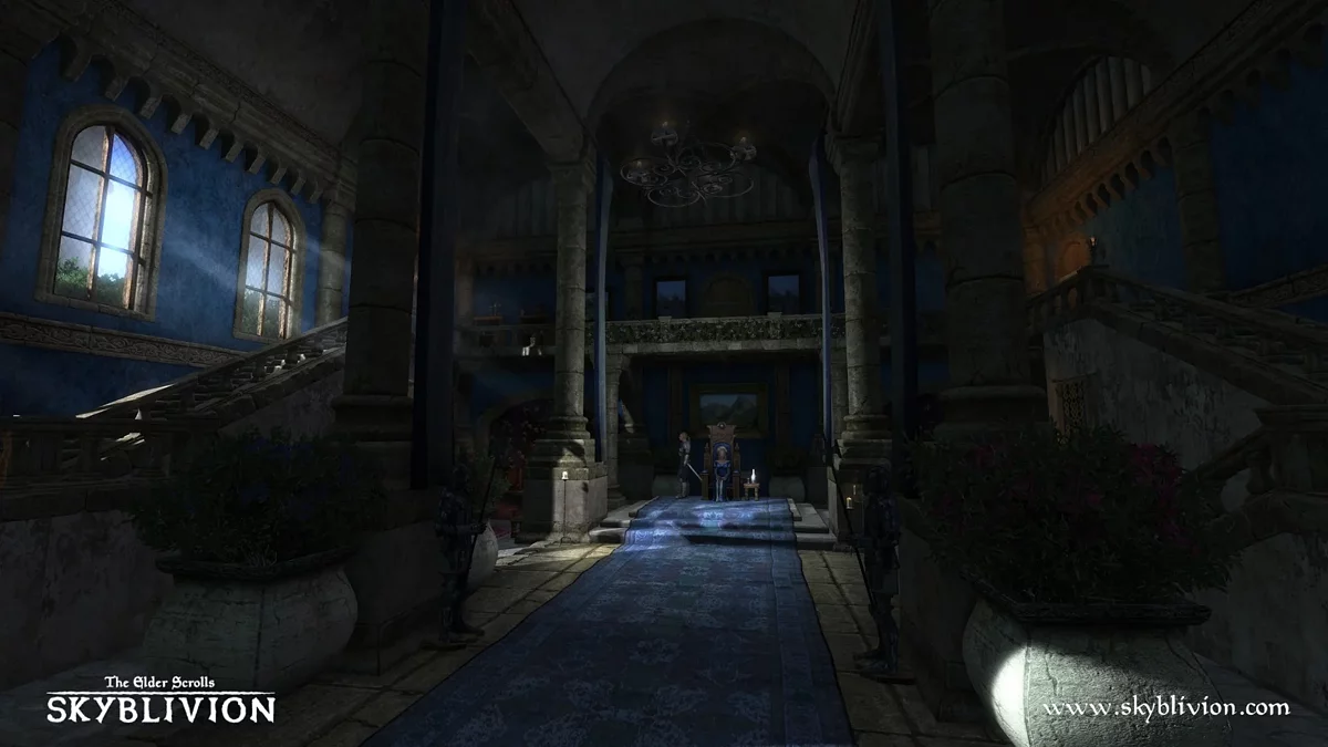 Для сравнения, вот как тронный зал выглядит в оригинальной Oblivion и недавнем ремастере. Локацию показывают на отметке 3:10.
