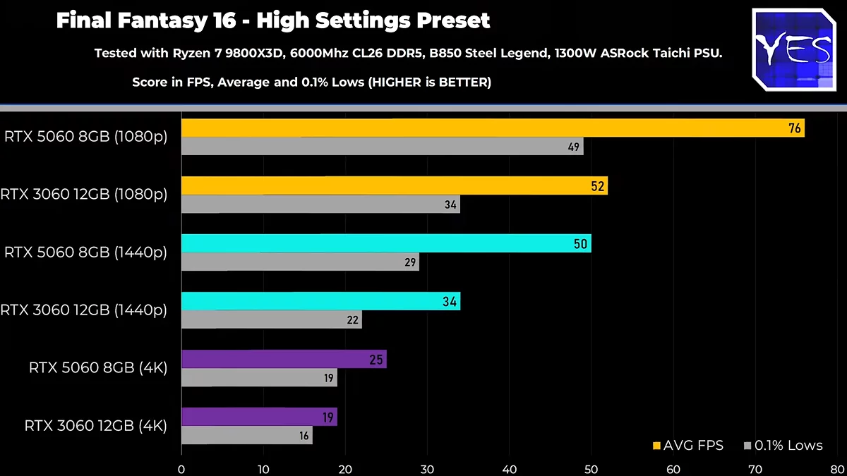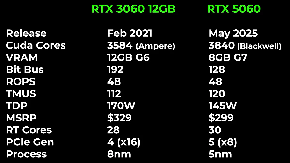 Недостаток VRAM бьет по плавности: RTX 5060 уступает RTX 3060 12GB в стабильности кадров