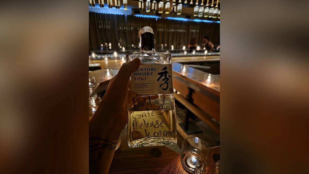Пять с небольшим лет назад я написал дату выпуска BG3 на этой бутылке виски и оставил её висеть в баре, и никто её не нашёл. Я был пьян, но бутылка так и не утекла в сеть, так что это просто забавная история без юридический проблем.