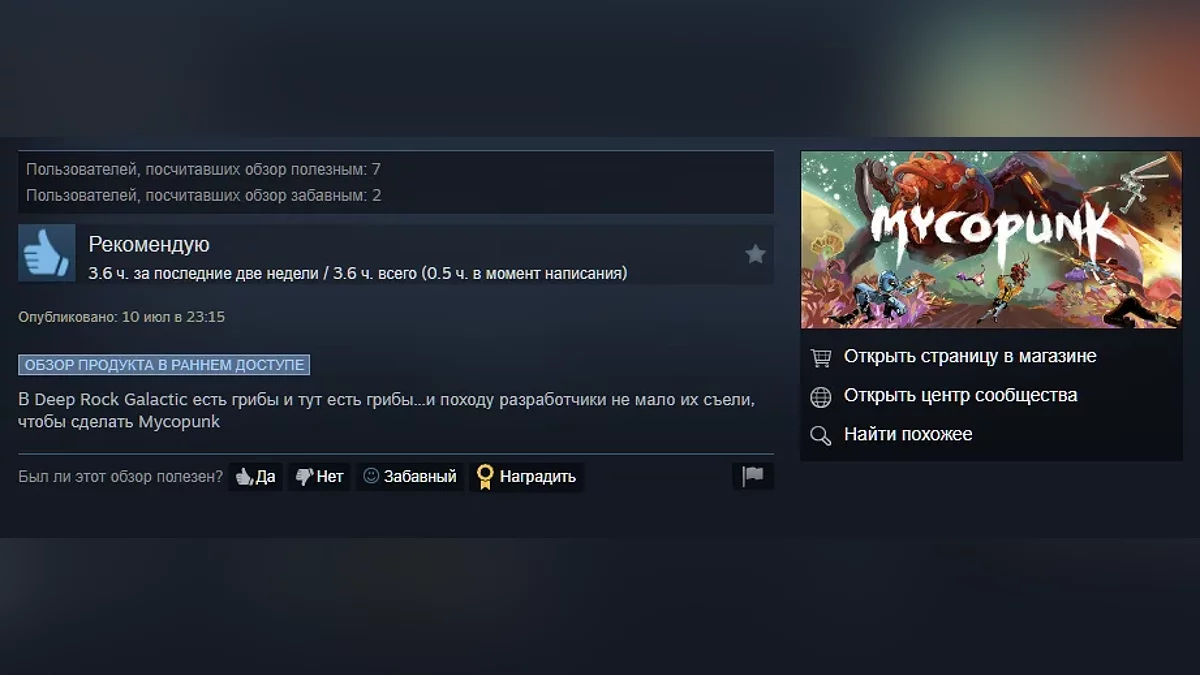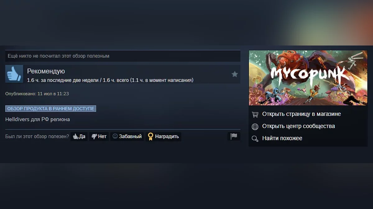На момент написания заметки Mycopunk насчитывает 97% положительных отзывов. Судя по отзывам, у игры есть все шансы понравиться фанатам Helldivers 2, Deep Rock Galactic и других кооперативных хитов.
