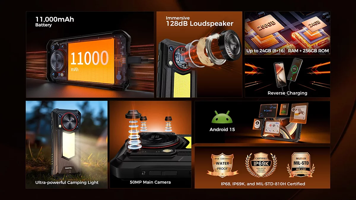 В продажу поступил защищённый смартфон Oukitel WP53 Pro с огромной батареей и фонарём. Новинка от китайской компании Oukitel позиционируется как доступный, но крайне выносливый аппарат для активного использования. Его ключевой особенностью стала аккумуляторная батарея рекордной ёмкости 11 000 мА*ч, что обещает до 5-6 дней работы без подзарядки при максимальной нагрузке и до 1000 часов в режиме ожидания. Батарея также поддерживает функцию обратной зарядки других устройств через USB-C.