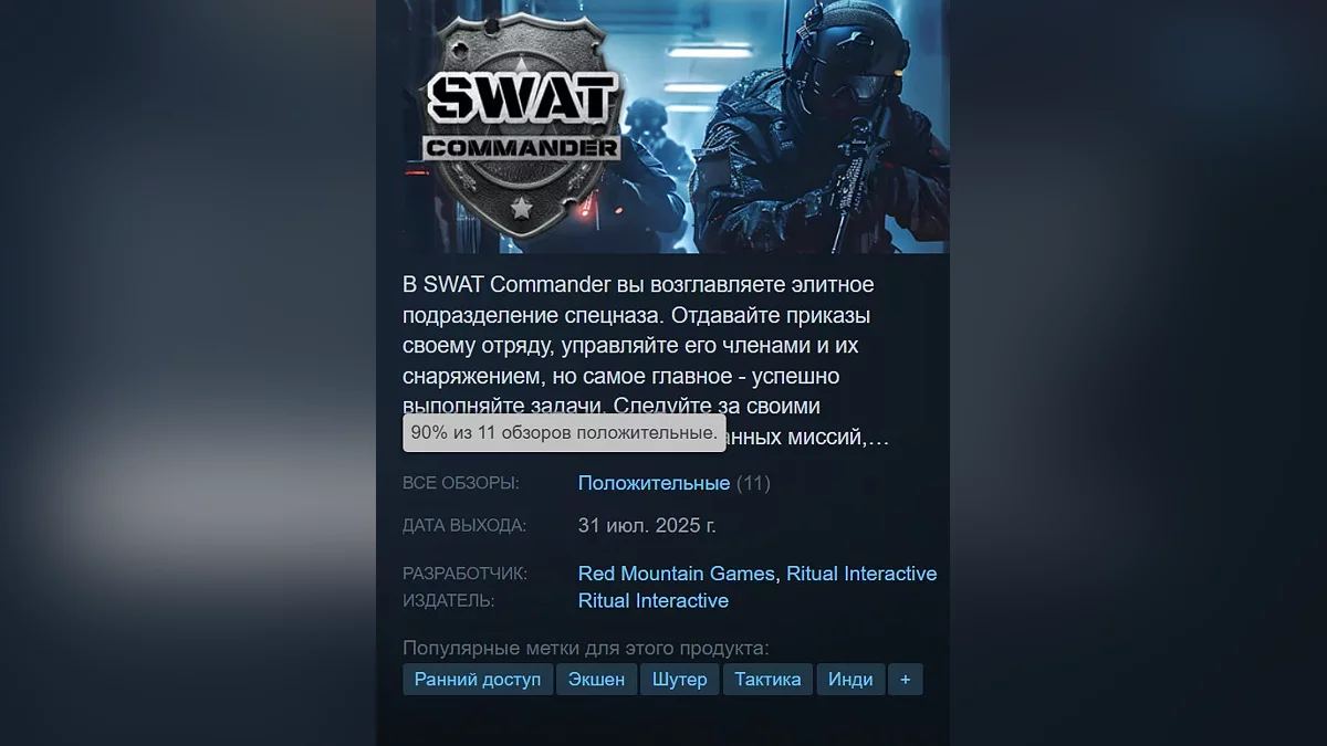 В Steam вышел шутер про спецназ в духе Ready or Not с рейтингом 90%