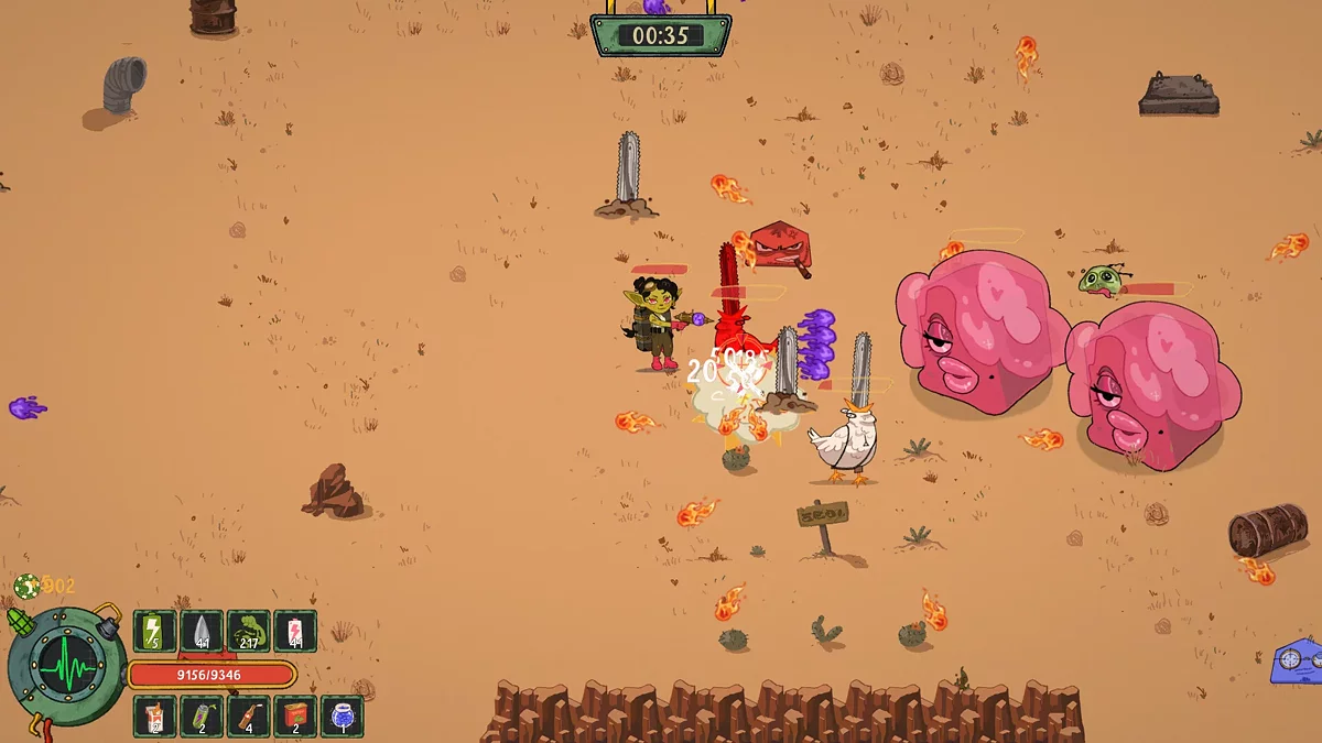 Nora and Frank — экшен-рогалик с видом сверху про гоблиншу-инженера Нору и её друга Фрэнка, живого чемодана-мимика. Игроки должны уничтожать орды врагов в постапокалиптическом мире, зарабатывать фишки и обменивать их на различные усилители. Страница в Steam.