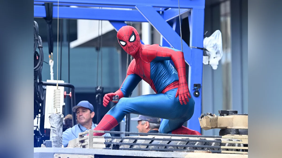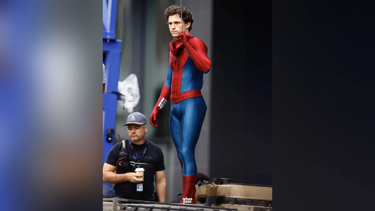 Фотографии позволяют более детально взглянуть на новый костюм Тома Холланда (Tom Holland). На нескольких снимках актёр стоит на военной технике — видимо, студия трудилась над важной экшен-сценой.