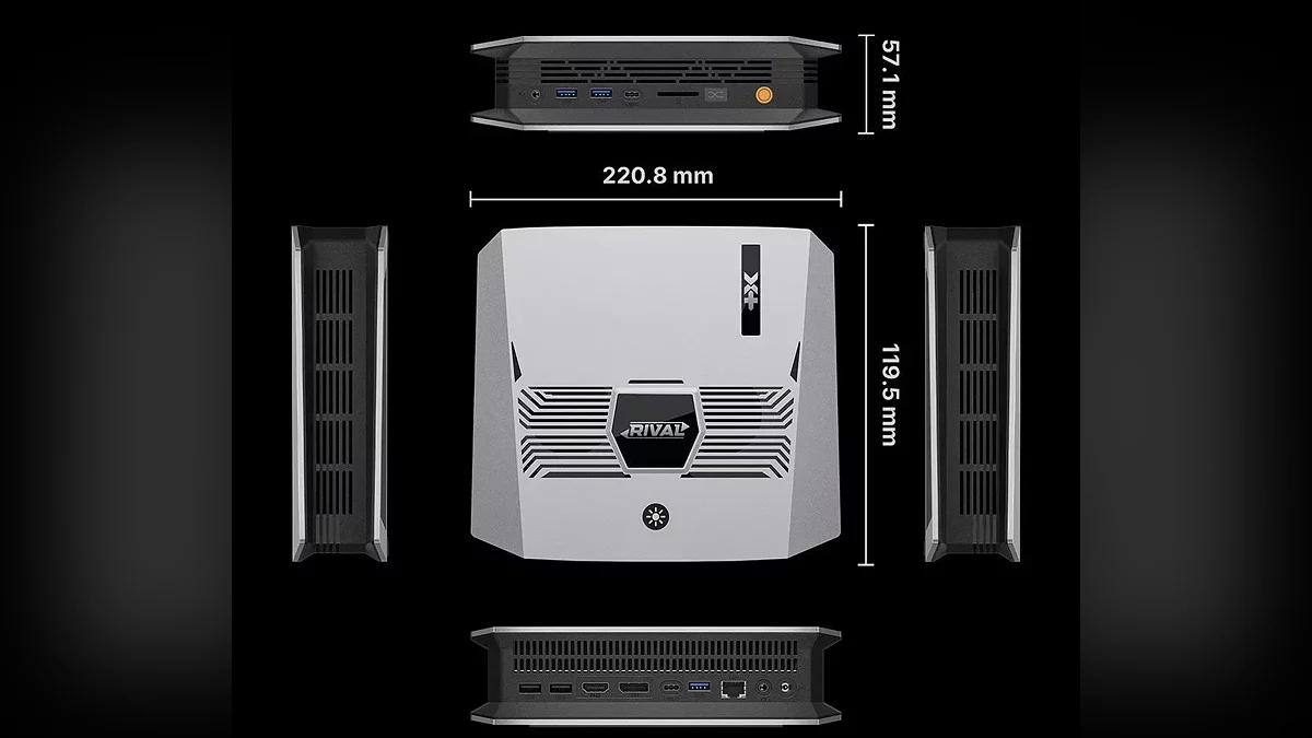 Все компоненты размещены в корпусе размером 220,8 × 119,5 × 57,1 мм. Несмотря на скромные габариты, система охлаждения здесь кастомная: используется двухвентиляторная схема с тремя медными тепловыми трубками. Это решение помогает эффективно отводить тепло даже при высокой нагрузке.