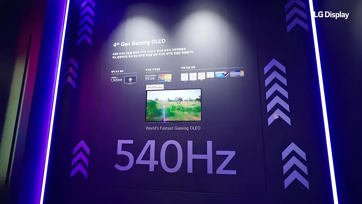 На выставке K-Display 2025 в Сеуле LG Display показала 27-дюймовую OLED-панель для игровых мониторов с рекордной частотой обновления 540 Гц в разрешении QHD (2560 × 1440). Особенность новинки — технология Primary RGB Tandem, где красный, зеленый и синий субпиксели работают как независимые источники света. Это решение отличает панель от двойных слоёв Tandem OLED в iPad, направленных лишь на повышение долговечности.
