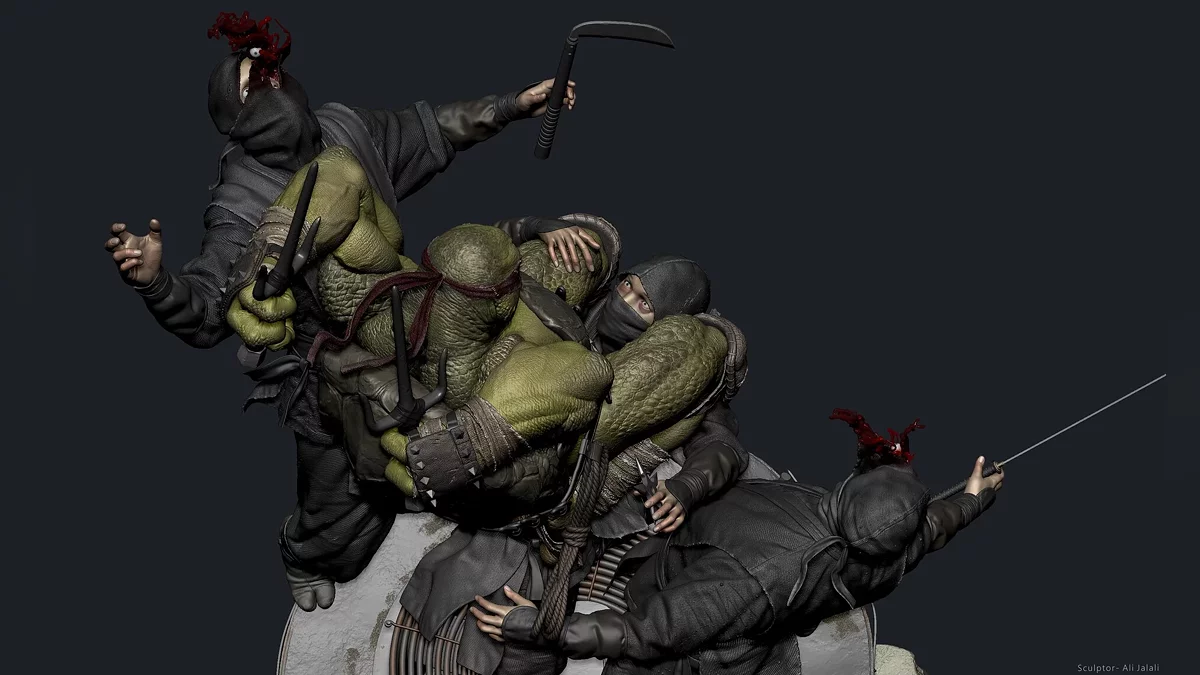 Бывший художник Ubisoft и ведущий художник по персонажам Али Джалали (Ali Jalali) из Krafton продемонстрировал на ArtStation брутальную и кровавую фигурку по мотивам «Черепашек-ниндзя». Он изобразил Рафаэля, сражающегося с тремя противниками сразу.