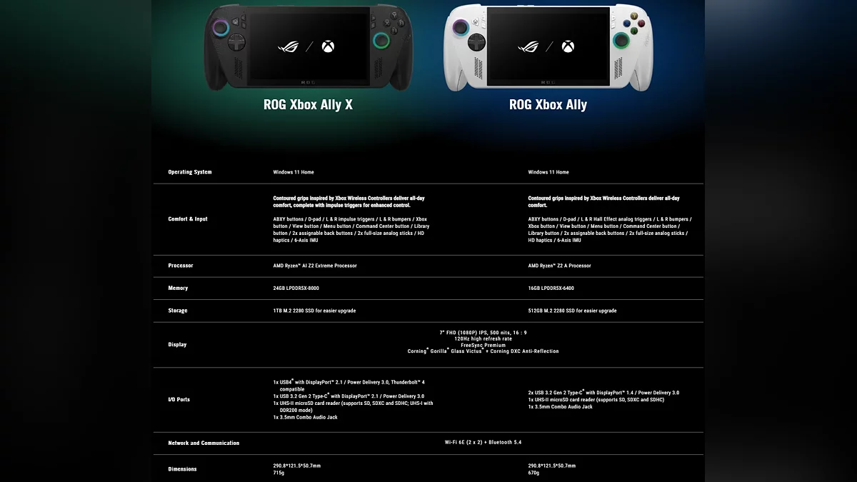 ASUS раскрыла полные характеристики Xbox Ally и Ally X