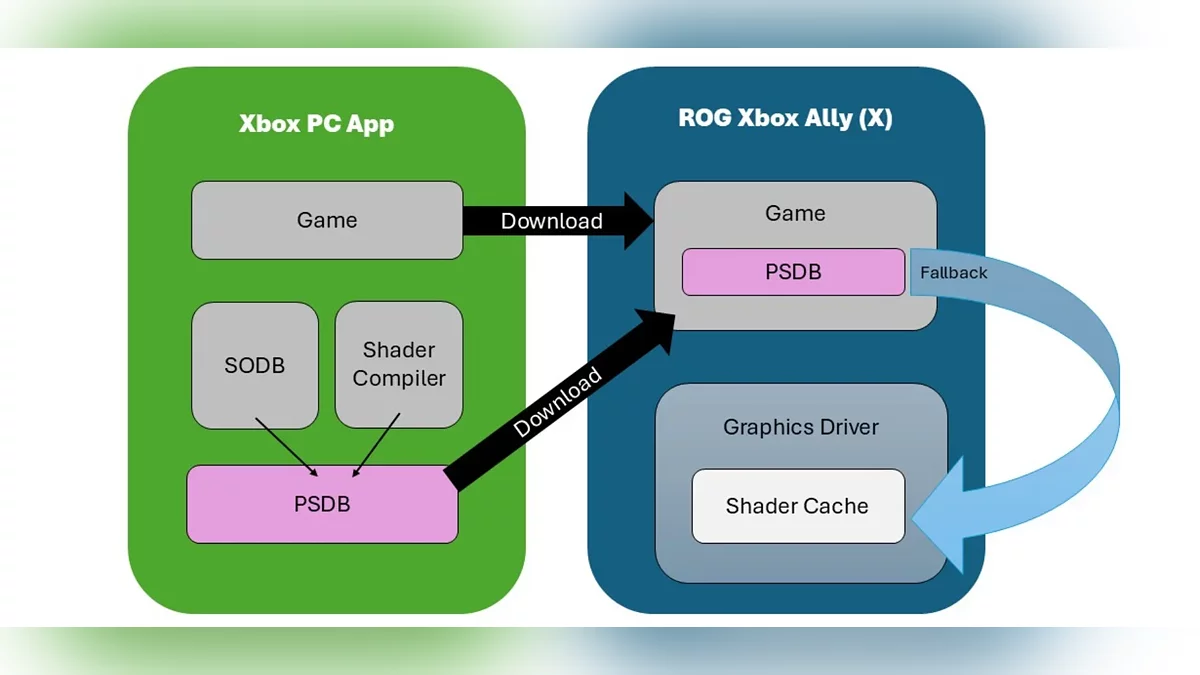 После установки игры или обновления драйверов видеокарты запуск может сопровождаться долгой компиляцией шейдеров, которая может занимать несколько минут. Это происходит потому, что каждый раз код шейдеров обрабатывается заново непосредственно на устройстве пользователя с учетом конкретного «железа» и версии драйвера. Новый метод Microsoft переносит эту задачу в облако. Технология будет работать через систему предварительно собранных пакетов шейдеров (Precompiled Shader Database, PSDB), а пакеты в свою очередь будут создаваться на серверах Microsoft в партнерстве с производителями видеокарт и привязываться к определенным конфигурациям GPU и драйверов.
