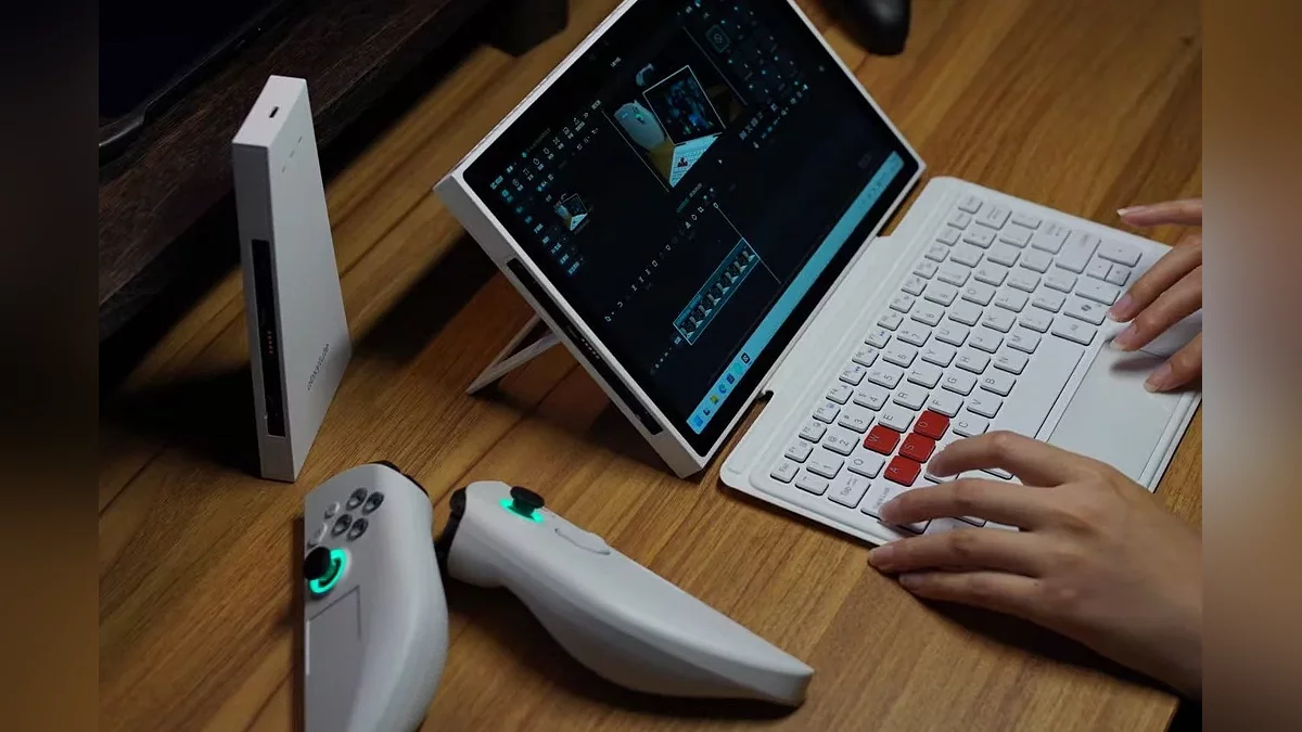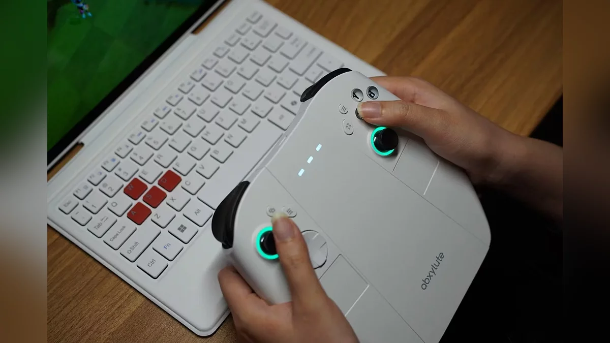 Конструкция у устройства модульная, основные органы управления вынесены на два съемных контроллера с сенсорными панелями и джойстиками на датчиках Холла. Их можно соединить в единый беспроводной геймпад, а для тех, кто планирует использовать систему в качестве мини-PC, Abxylute предлагает опциональную съемную клавиатуру.