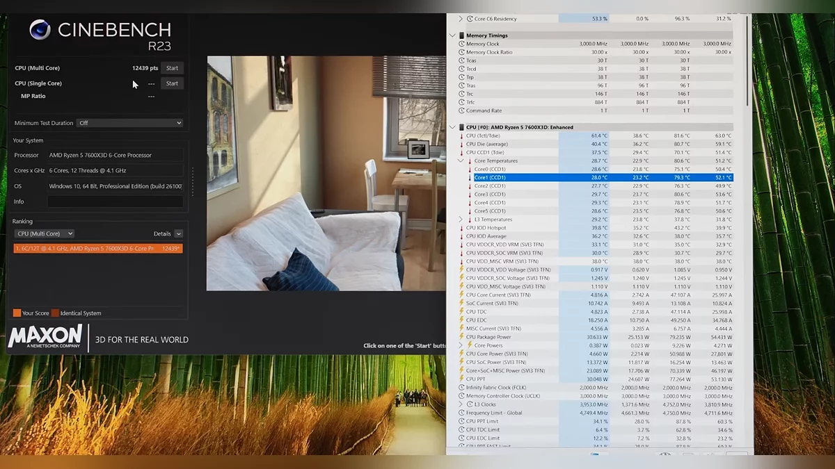 Для тестов использовался процессор AMD Ryzen 5 7600X3D. Поскольку штатные крепления Ultra ChillTec были рассчитаны на устаревшие сокеты их пришлось модифицировать вручную. Ожидалось, что винтажный кулер значительно проиграет, но результаты оказались противоположными. В нагрузочном тесте Cinebench R23 процессор с Ultra ChillTec показал температуру на 5 градусов ниже (82°C против 87°C), чем с Noctua NH-D9L, и стабильно держал более высокие частоты, что напрямую отразилось на итоговом количестве баллов — 12 439 против 12 396 в пользу Ultra ChillTec.