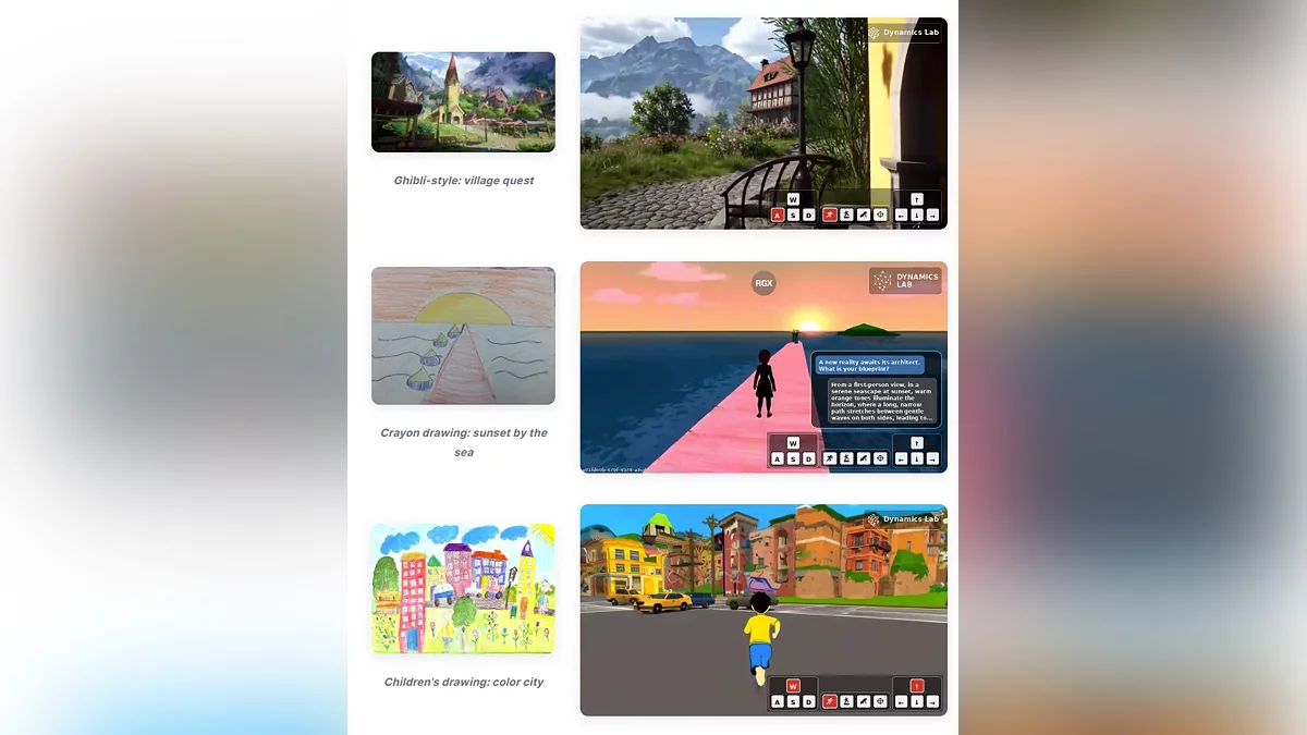 Mirage 2 позволяет загрузить любое изображение и преобразовать его в интерактивное пространство, которое можно исследовать. Система поддерживает навигацию, бег, прыжки и другие действия, а также позволяет менять мир на лету с помощью текстовых команд. Например, можно попросить добавить мост, изменить погоду или создать новый объект, и мир мгновенно перестроится без перезагрузки уровня.