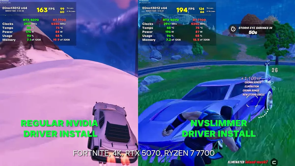 Тесты, проведенные Tech YES City на системе с процессором AMD Ryzen 7 7700 и видеокартой GeForce RTX 5070, местами показали значительные улучшения. В играх Fortnite и Warcraft III: Reforged значительно вырос показатель 0.1% Low FPS, отвечающий за плавность картинки, в некоторых сценариях прирост FPS составил до 50%.