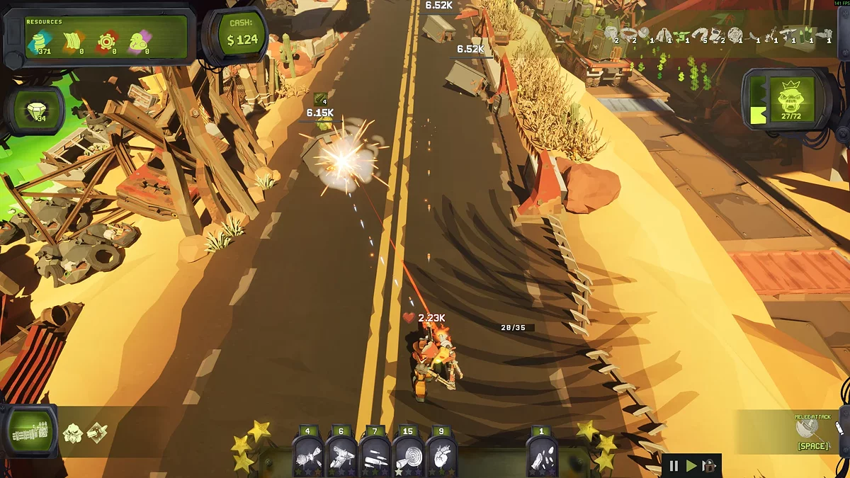 Wacky West — постапокалиптический экшен с видом сверху, события разворачиваются в пустыне Аризоны, выжженной ядерной катастрофой. Главным героем выступает выживший, который исследует пустошь, населённую мутантами и зомби, чтобы найти ресурсы для улучшения своей подземной базы и создания мощного оружия. Игра получила 93% рейтинга. Страница в Steam.