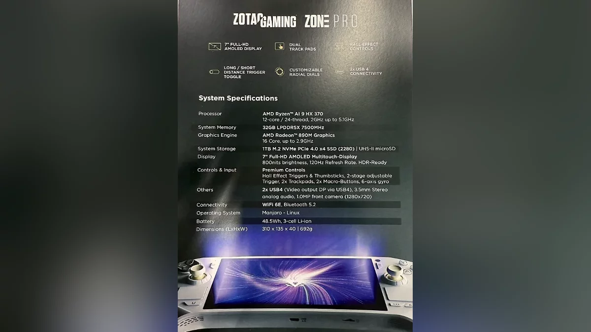 На Gamescom показали портативку Zotac Zone Pro на Manjaro Linux