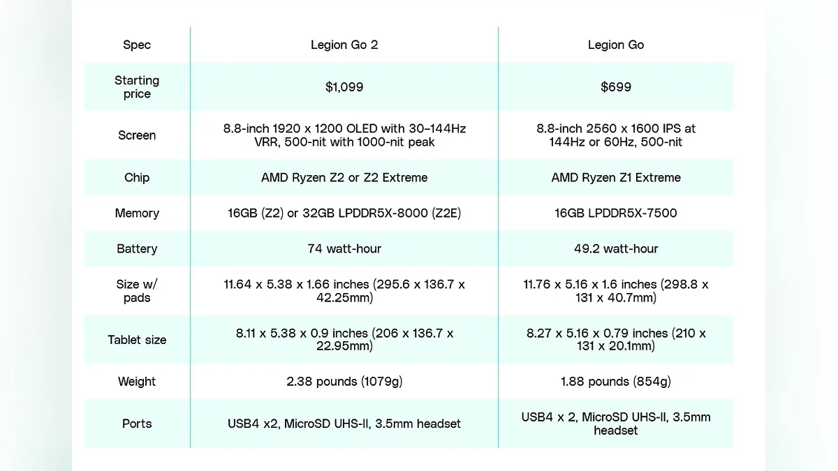 Главным сюрпризом для многих стала стоимость Legion Go 2, ведь стартовая цена составляет $1 049 (около 85 000 рублей) за базовую версию с чипом Z2, 16 ГБ ОЗУ и 1 ТБ памяти, а топовая комплектация с процессором Z2 Extreme и 2 ТБ накопителя может достигать $1 480 (около 120 000 рублей), что существенно дороже оригинальной модели, которая изначально стоила $700 (около 57 000 рублей). Старт продаж запланирован на октябрь.