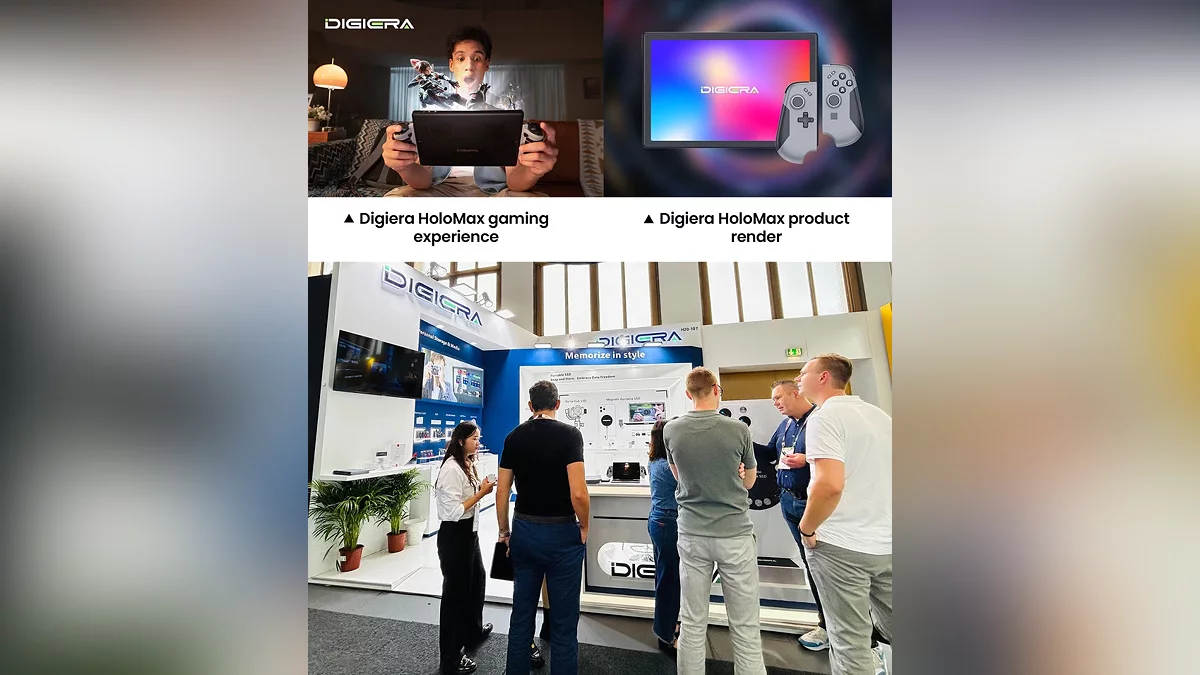 На международной выставке потребительской электроники IFA 2025 компания DigiEra провела первый показ необычного устройства HoloMax. Это портативный гибрид, сочетающий в себе функции ноутбука и игровой консоли, а главной особенностью которого стал автостереоскопический экран, создающий эффект объёмного изображения без необходимости использования специальных очков.