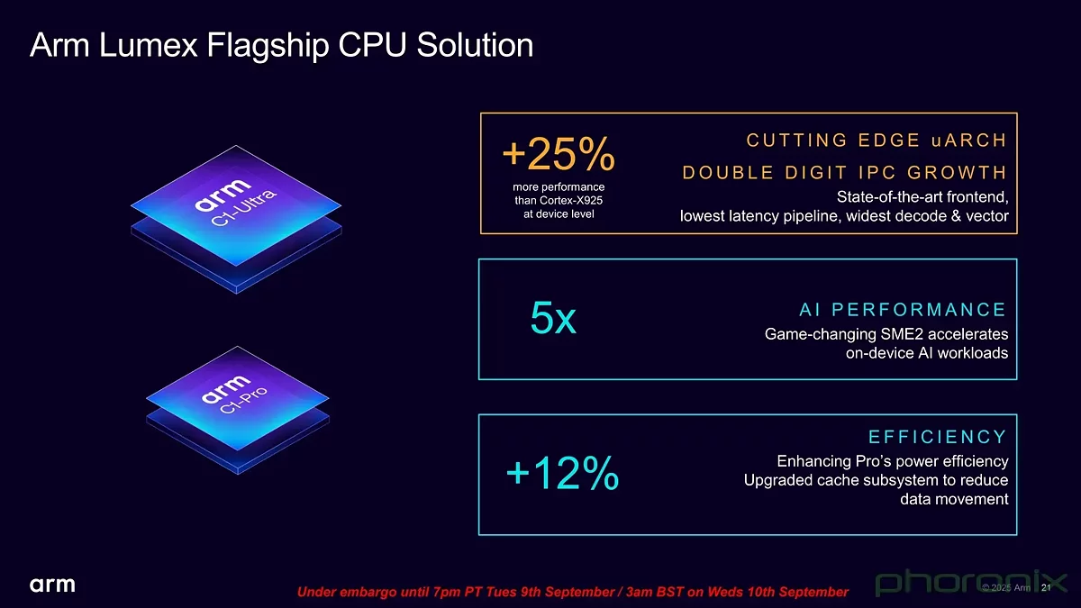 Компания Arm анонсировала платформу Lumex C1 — новое поколение процессорных ядер, которые станут основой для будущих смартфонов, планшетов и ноутбуков. Основной акцент у новых ядер сделан на повышении производительности искусственного интеллекта непосредственно на устройстве, без постоянного обращения к облачным серверам.