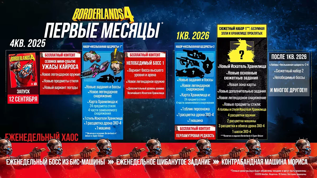 На PC состоялся релиз Borderlands 4. В продаже есть три издания — стандартное из 70 долларов, делюкс за 100 долларов и супер-делюкс за 130 долларов. В России игра не продаётся.