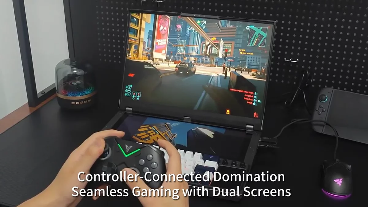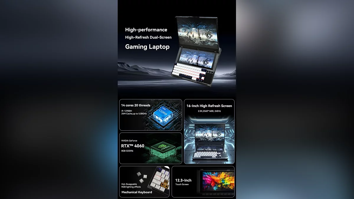 Устройство в первую очередь ориентировано на тех геймеров и специалистов по созданию контента. Помимо основного 16-дюймового дисплея с разрешением 2K и частотой обновления 240 Гц, инженеры разместили под ним дополнительный 12-дюймовый сенсорный экран, который работает как второй монитор, на него можно выносить элементы интерфейса приложений или панели управления в играх.