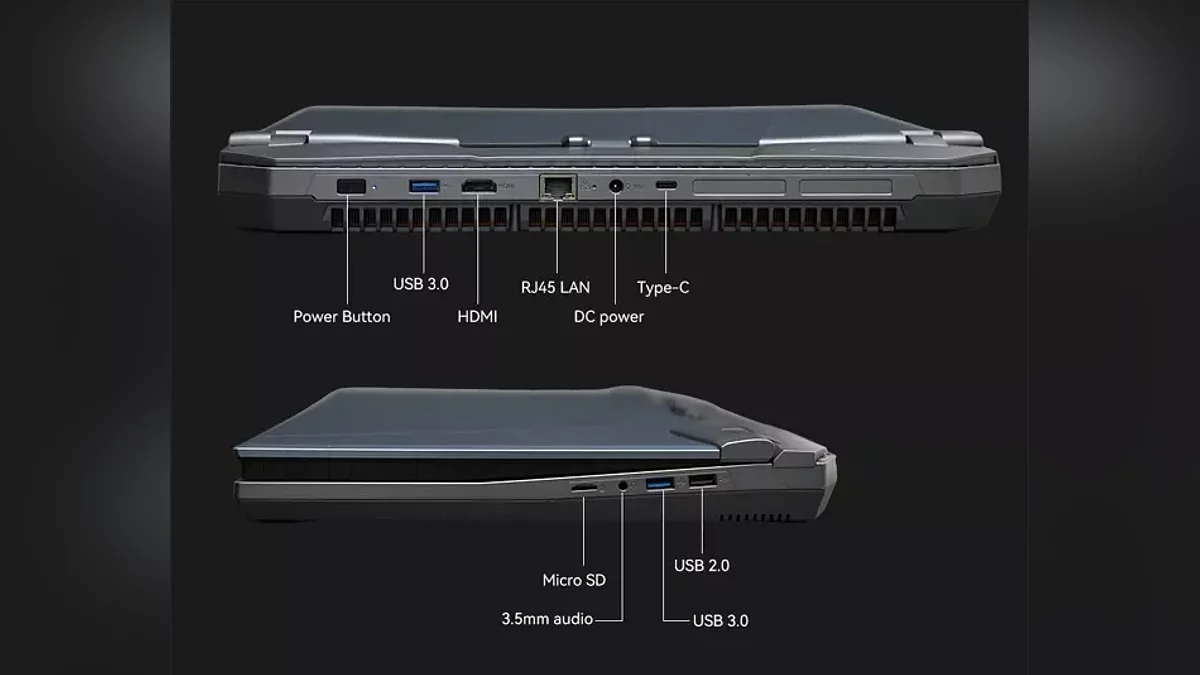 В базовой конфигурации ноутбук получит процессор Intel Core i9-12900H и видеокарту NVIDIA GeForce RTX 4060, при этом видеокарту можно заменить на любую другую, использующую стандарт MXM. Правда, найти в розничной продаже такие видеокарты не так просто. У ноутбука отсутствуют высокоскоростные порты вроде Thunderbolt, что ограничивает возможность подключения внешней видеокарты, имеются лишь выходы HDMI, USB-A и один Type-C.