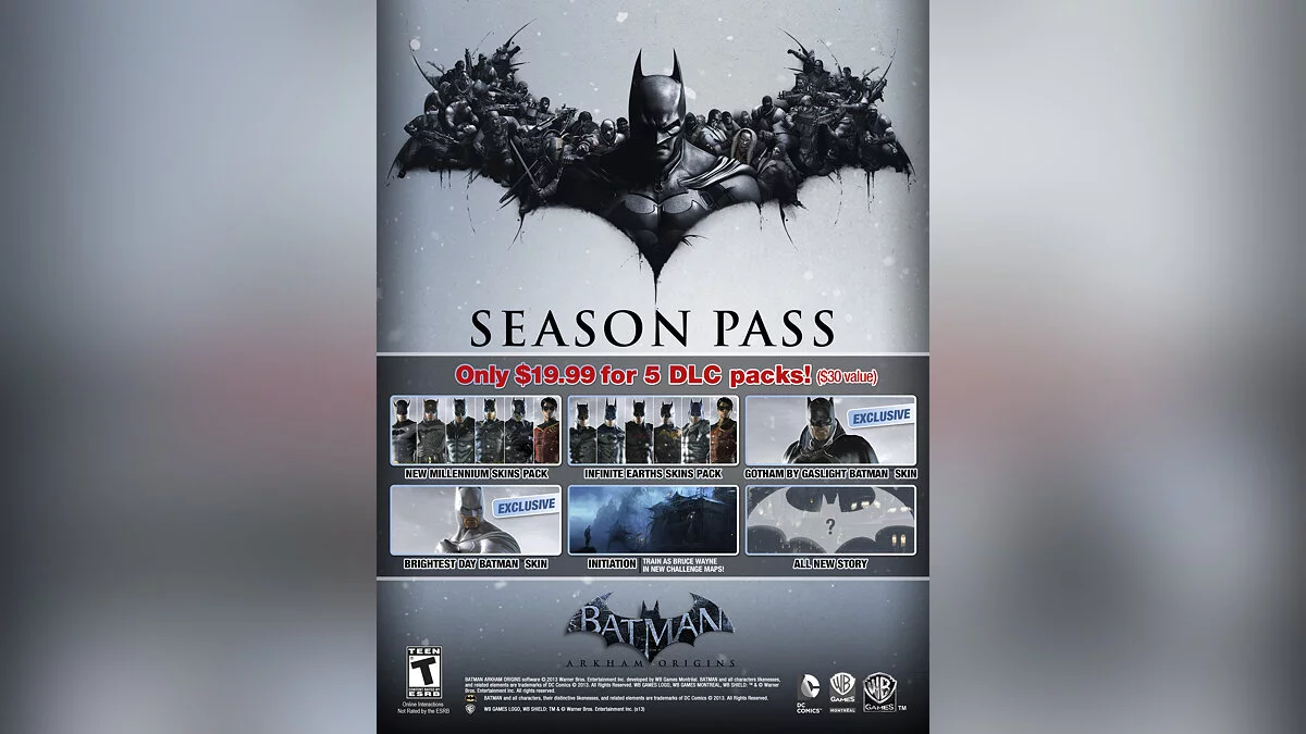 Warner Bros. анонсировала сезонный абонемент для Batman: Arkham Origins, который предложит 5 будущих дополнений для игры, включающих два эксклюзивных костюма для Бэтмена, по весьма привлекательной цене.