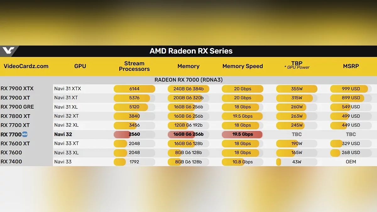 AMD представила Radeon RX 7700 с 16 ГБ памяти и 256-битной шиной