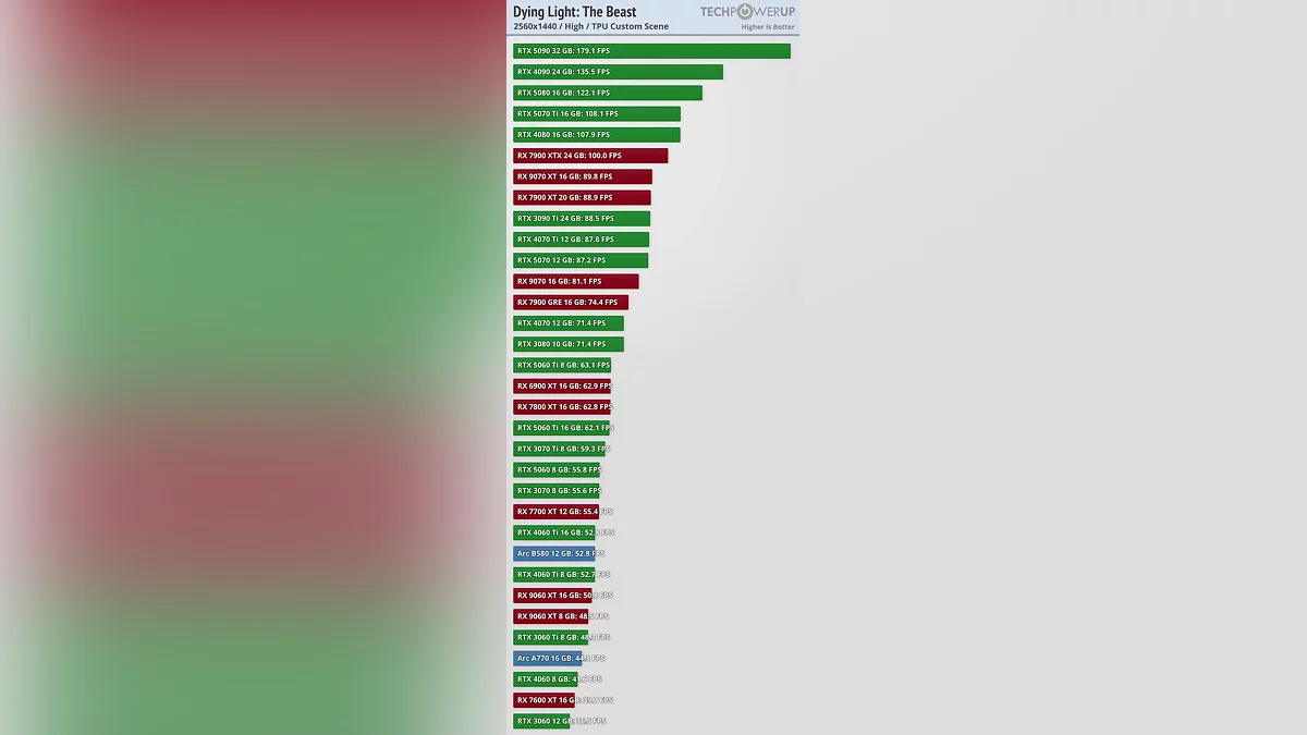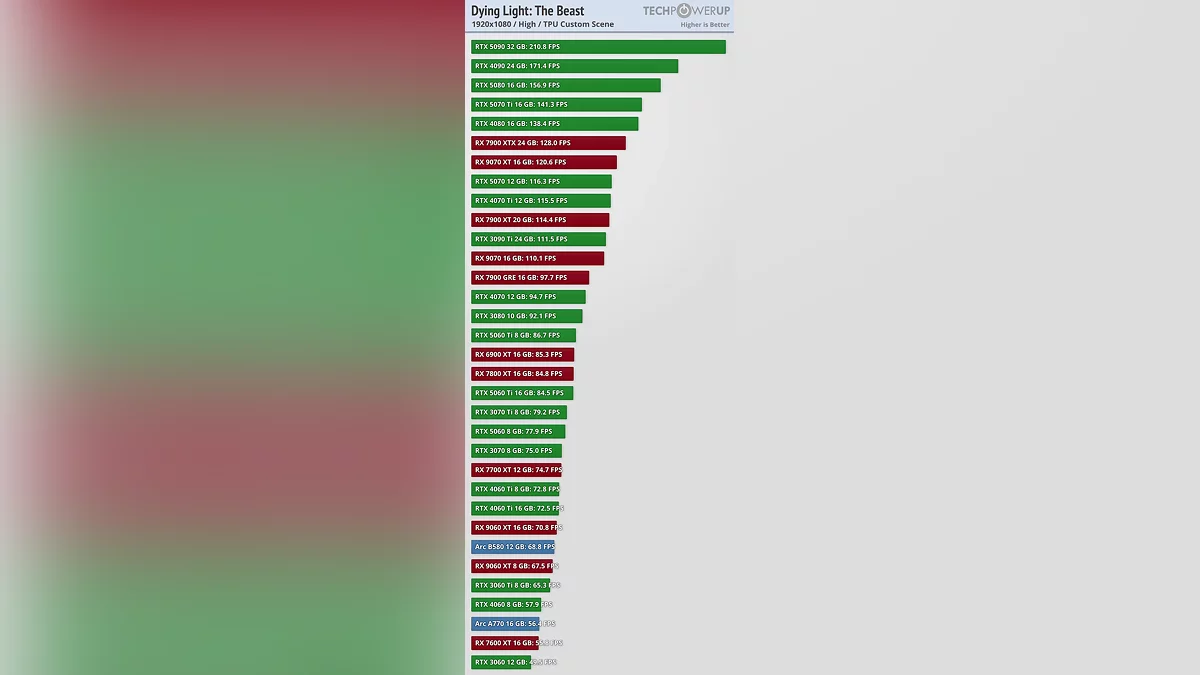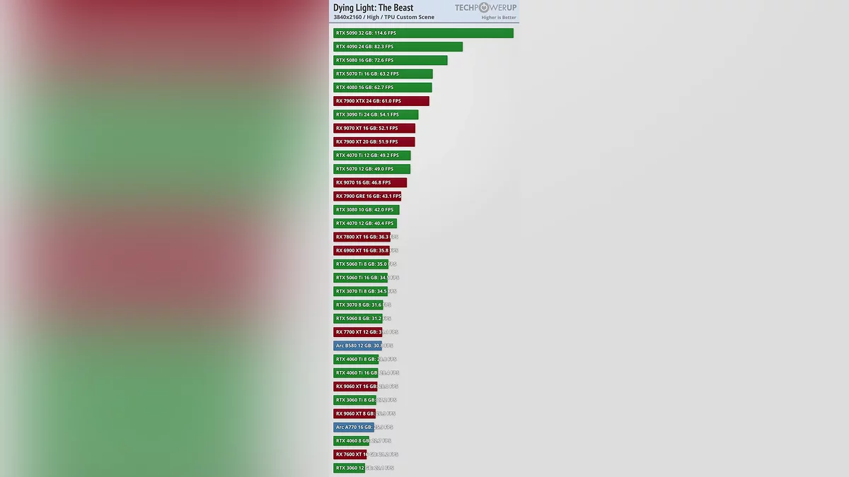 Портал TechPowerUp протестировал PC-версию Dying Light: The Beast на 33 разных видеокартах от NVIDIA, AMD и Intel. Игра запускалась с максимальными настройками графики без DLSS/FSR.