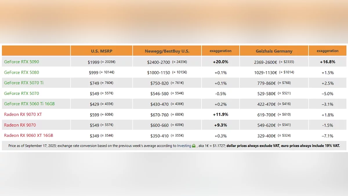 При этом ситуация остается неоднородной, ведь флагманская RTX 5090 все еще стоит значительно дороже своей рекомендованной цены в $1 999, достигая $2 400-$2 700 (около 200 000 — 226 000 рублей). Для сравнения, видеокарты AMD серии RX 9000 в США также демонстрируют цены выше рекомендованных, тогда как в Европе их стоимость уже близка к нормальной.