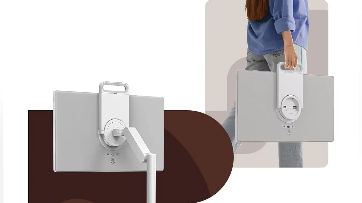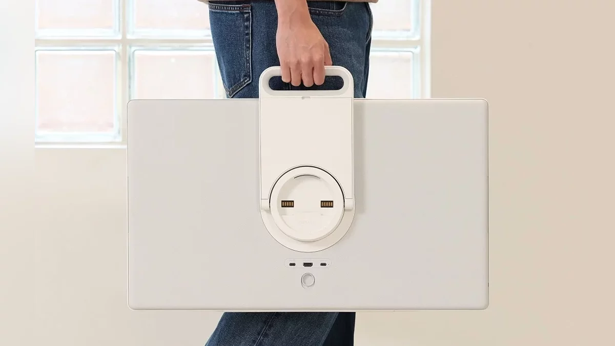 Модель имеет 27-дюймовый экран с разрешением QHD и позиционируется не только как телевизор. Поддержка сенсорного ввода и частоты обновления 120 Гц позволяет использовать его в качестве большого портативного монитора для ноутбука или даже в портретном режиме для просмотра ленты в соцсетях. Встроенная ручка одновременно служит подставкой, которая удерживает устройство на столе. Питание и зарядка устройство осуществляются через порт USB-C, также через этот порт его можно подключить к ноутбуку или смартфону.