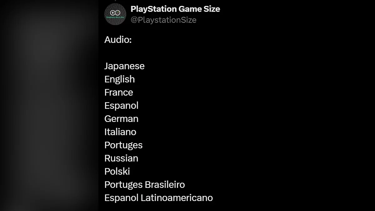 По словам PlayStation Game Size, игра также предложит английскую, японскую, французскую, испанскую, немецкую, итальянскую, португальскую и польскую озвучки.